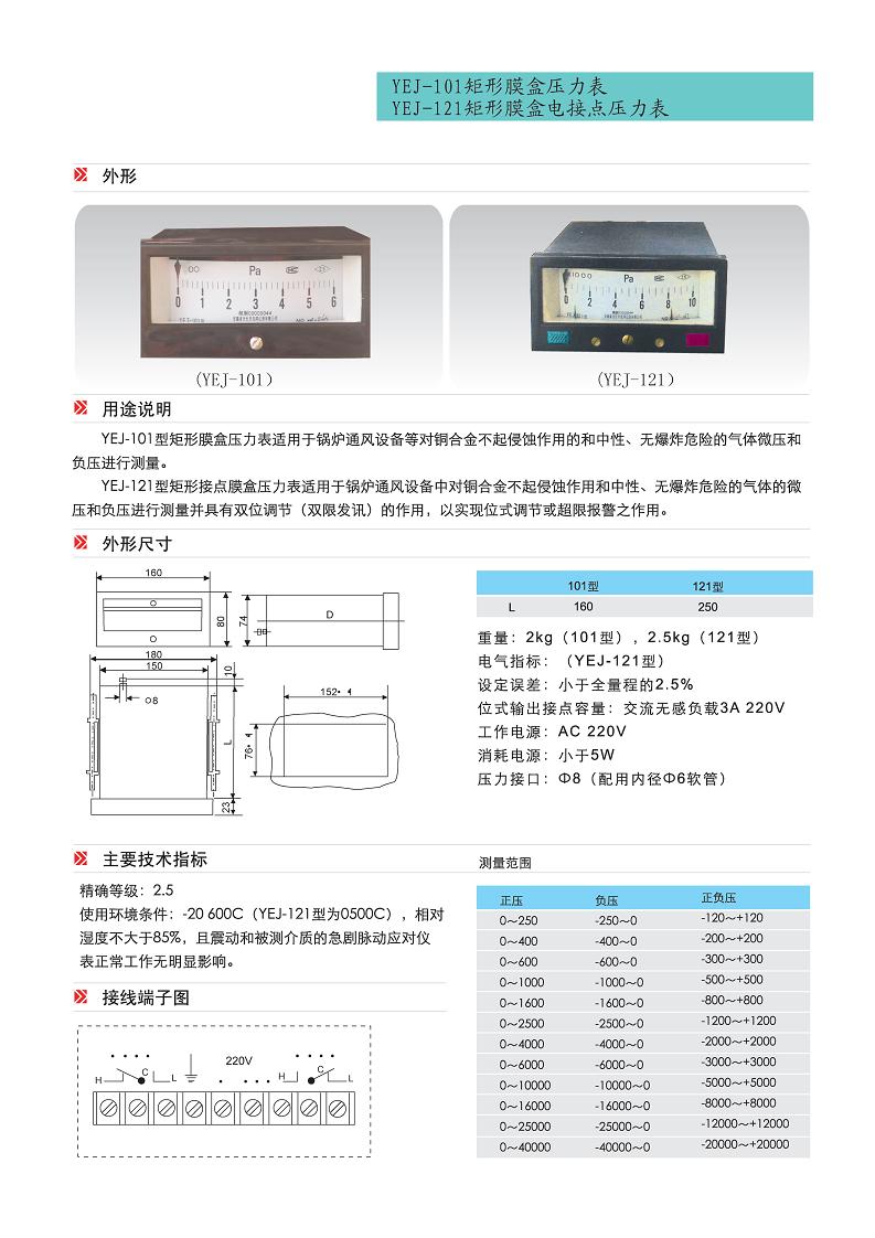 矩形膜盒壓力表