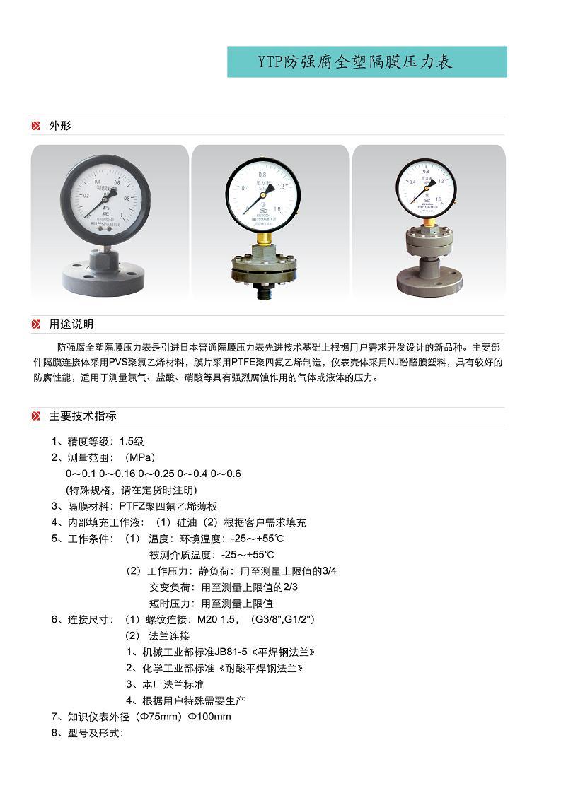 防強(qiáng)腐全塑隔膜壓力表